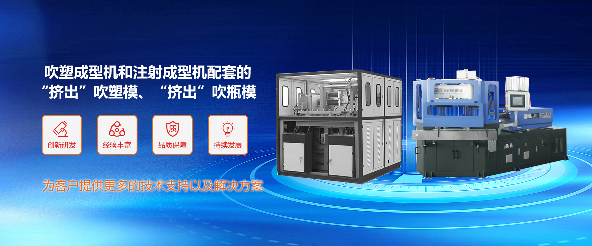 張家港玖威機(jī)械有限公司匯集了從事塑料加工機(jī)械及配套模具研發(fā)多年的工程技術(shù)人員,有豐富的理論和實(shí)踐經(jīng)驗(yàn),能為用戶的投資計(jì)劃提供詳盡周到的服務(wù)。